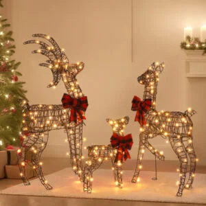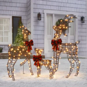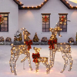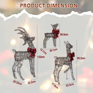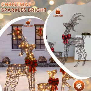 1. Charming Christmas Reindeer Family: This delightful set includes an adorable buck, doe, and fawn, each detailed with a striking plaid bowknot. Loved by both kids and adults, these reindeer bring warmth and festive joy to your outdoor or indoor Christmas decorations.
