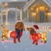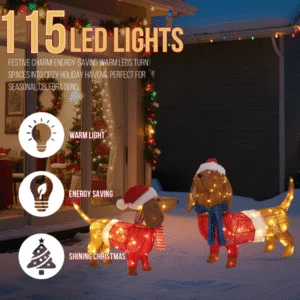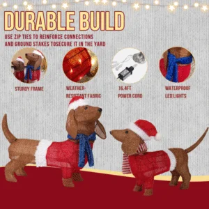 1. Adorable Christmas Decoration: Featuring two adorable dachshund dogs wearing santa hats and clothes, this decoration adds a playful and festive touch to any space.